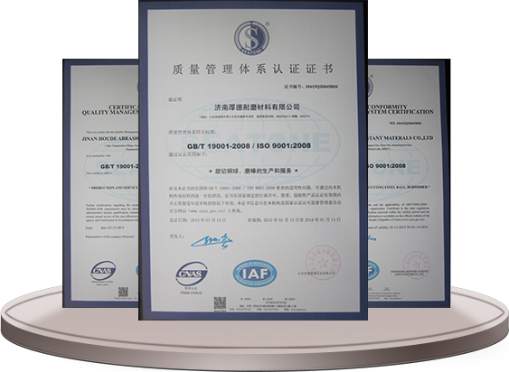 濟(jì)南厚德耐磨材料有限公司成立于2000年,原名(濟(jì)南東漢鐵藝有限公司)坐落于山東章丘,毗鄰309國(guó)道。注冊(cè)金1000萬(wàn)元,年產(chǎn)6萬(wàn)噸各類(lèi)棒磨機(jī)鋼棒和球磨機(jī)鋼球,鋼球出口到三十多個(gè)國(guó)家和地區(qū),磨棒出口到十多個(gè)國(guó)家和地區(qū)。公司擁有先進(jìn)的生產(chǎn)設(shè)備,經(jīng)驗(yàn)豐富的技術(shù)人員,產(chǎn)品各項(xiàng)性能指標(biāo)均達(dá)到先進(jìn)水平。公司已榮獲ISO9001-2000國(guó)際質(zhì)量體系認(rèn)證、IOS14001-2004國(guó)際環(huán)境體系認(rèn)證等榮譽(yù)...